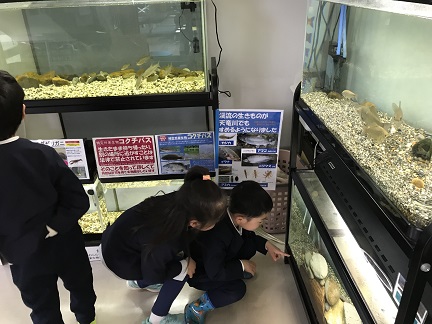少し降ってきた雨に、館内でお弁当を食べさせていただき、その後展示されている天竜川の生き物を見たりして過ごしました。