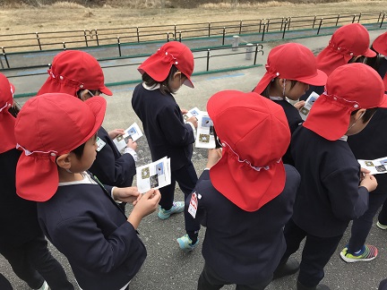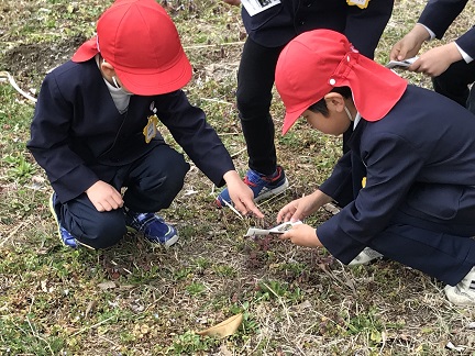 昨日見つけて撮ったという“春”の生物の写真(図鑑)を手に、みんなで春探しをしました。