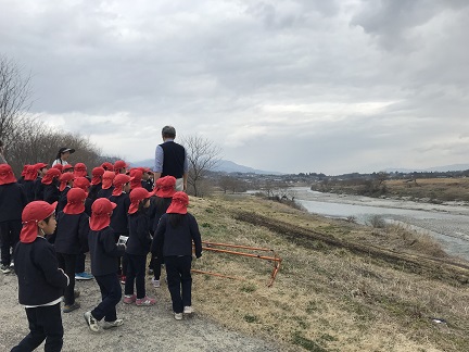 飯田線「かわじ」駅まで電車に乗っていきました。年長さんは今まで、「鼎駅」や「伊那八幡駅」で下車することはありましたが、こんなに遠く(?)まで乗ったことはありません。車窓を楽しみ、降りてからも天竜川沿いの遊歩道を歩き、広々とした景色を楽しみました。