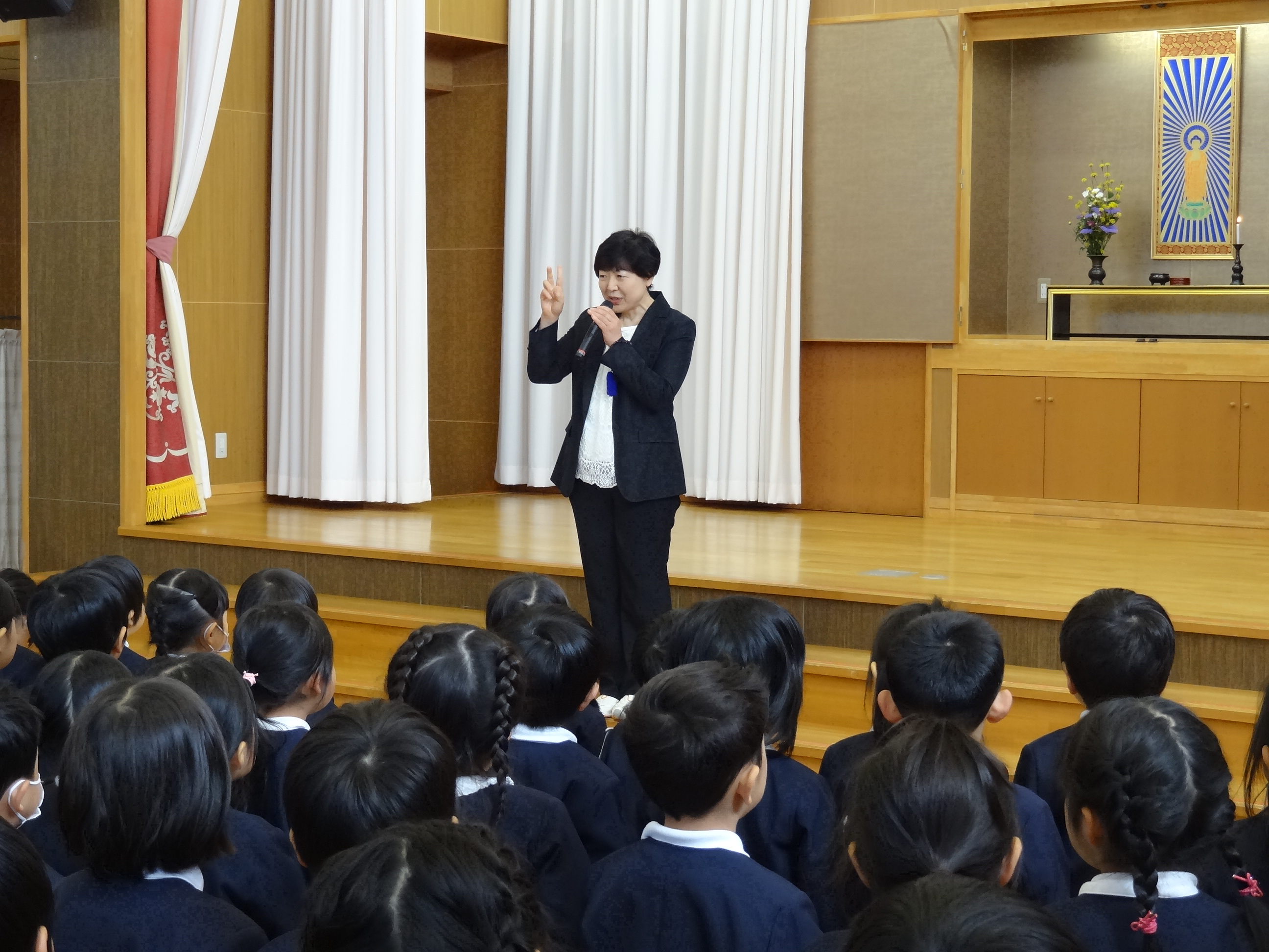 年長さんの礼拝はきれいです。園長先生のお話を聞きました。
