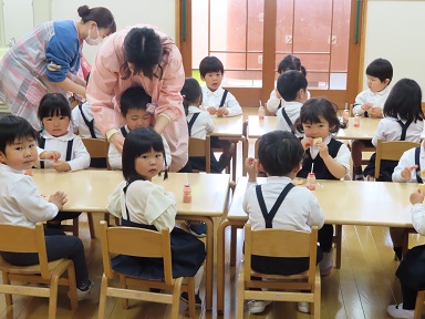 ↑お片付け 上手だね! ↑おやつも みんなと おいしくいただきました。
