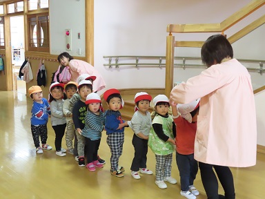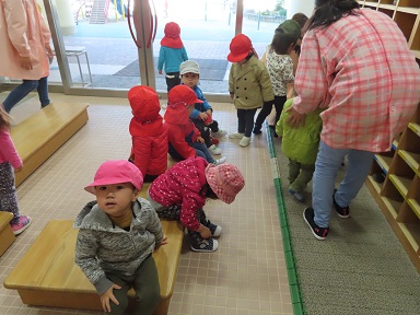 ↑2歳児ちゅーりっぷさんはもう自分で靴が ↑同じく2歳児いちごさん、お友達と長い