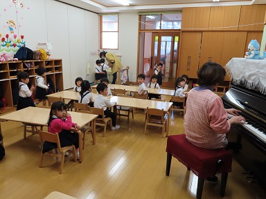 昨日は新しい年長さん、年中さんが新しい保育室に集まり、1学期始業式がありました。