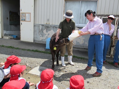 高校の先生や高校生のおにいさん、おねえさんに果樹園を見せていただいたり、牛やヤギを見たり餌をあげさせてもらったりしました。「いただくいのち」をこの日をきっかけに感じたり考えたりしていきたいと思います。