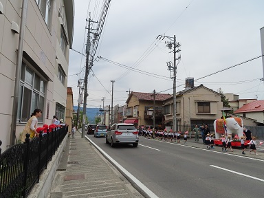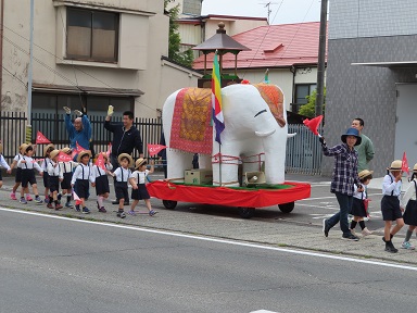 昨日の園内で行った「はなまつり」に続き、本日は飯田仏教会主催の「はなまつり」が行われました。このはなまつりのパレードは、だいぶ長いこと続いているようで、園児のおじいさんやおばあさんたちもパレードの思い出をお持ちの方々もいるようです。マーヤ様の夢に登場した白い大きな像と一緒に、市内の仏教系の保育園・幼稚園の園児たちがパレードを行いました。パレードは幼稚園の前も通ってくれました。お留守番の皆で手を振って応援しましたよ。