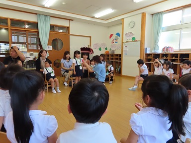 年中さんは「何色が好きですか?」とお友達からの質問を受けていました。堂々と答えられるところがやっぱり年中さんです。