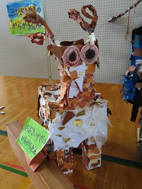 がらがらどんたちも、表情のかわいさはあるものの、全身から、逞しさを感じます。角や耳の表現の違いが面白いですね。それぞれのグループで試行錯誤して作った様子が目に浮かびます。