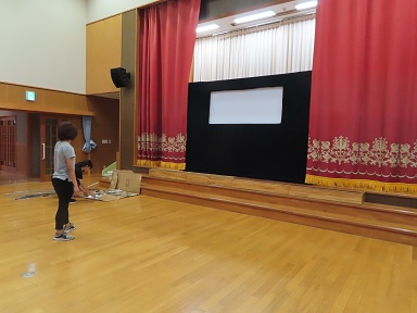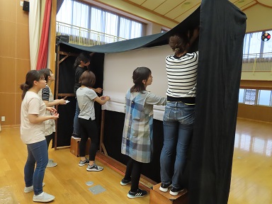 以上児の七夕の集会では、職員が七夕の影絵を行います。先週、大きな影絵の舞台を作りました。