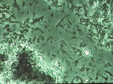 ↑長細いのが、虫歯菌”ミュータンス”。「こんなのがいるの~?」と驚きの声が聞こえました。歯磨きしっかりやらないとね!