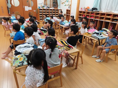 もみじさんも、きくぐみさんも、自分で体を拭き、パジャマに着替えて、机の上には明日の着替えの準備もできました。