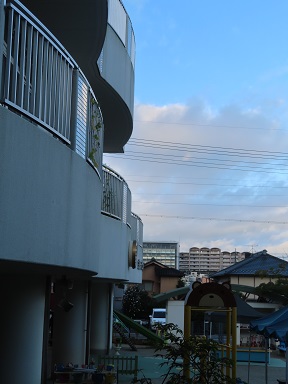 今朝はお陰に台風の雨雲も一時通過し、青空が出てきています。朝のお散歩も、スイカ割りも外でできそうです。