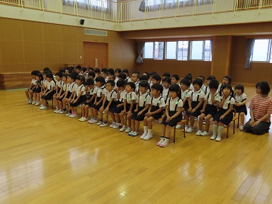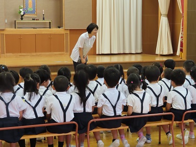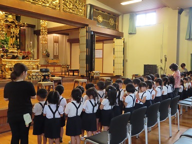 のの様にお参りをして、園長先生のお話をお聞きしました。園長先生曰く「きのうのみんなとは、何かが違う!」