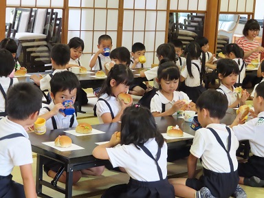 お散歩の後は、皆で朝のお集まり。