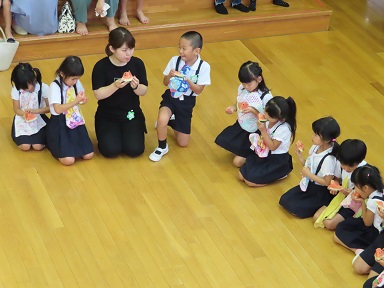 昨夜高熱が出て、お友だちが1人早退となってしまい可哀想でしたが、早退したお友だちも、夜の慈光幼稚園で過ごした時間が、皆との楽しい思い出として心に残ったら嬉しいです。くれぐれもお大事に。