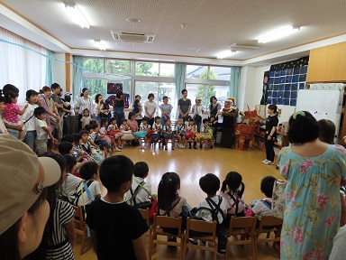 帰りの会は、今回は特別に保育室にお迎えに来た保護者の皆様にもお入りいただき、一緒に合宿を振り返り、さようならをしました。