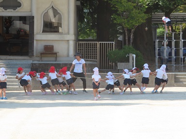 午後の園庭では、遊びの中でリレーごっこや綱引きごっこが自発的にはじまります。運動会が楽しみで仕方のないのですね。
