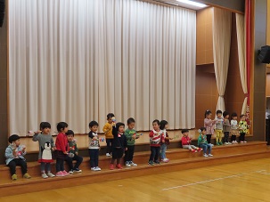 できあがった楽器を早速持ってステージで大演奏会!可愛らしいさくらんぼさん達でした。