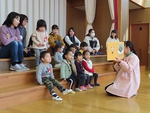 今回は『てぶくろ』の絵本を見ました。子どもだけで座って見られるようになりました!
