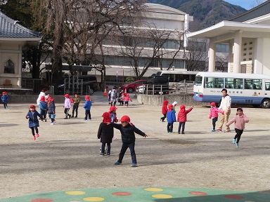 今日も給食後にはお父さん先生やお母さん先生が園庭で一緒に遊んでくれました。寒いけど心が暖かくなった1日でした。
