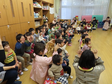 未満児さんは3人のお友達がお誕生日を迎え、皆にお祝いしてもらいました。