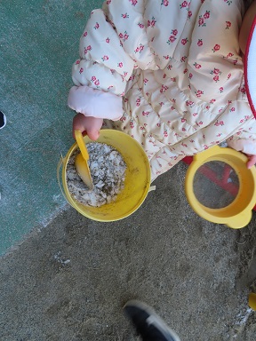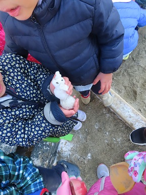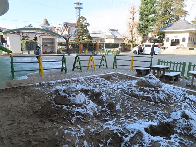 登園して来た子どもたちは大喜び!寒さにも負けずに園庭に飛び出して、冷たい雪をかき集めて遊んでいました。