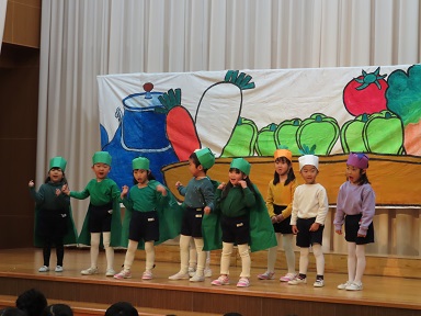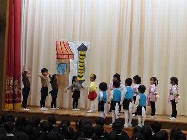 今回の発表は、年中さんがクラス毎に劇を、