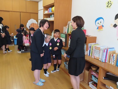 式の後には各保育室でお別れの会を行いました。一人ずつお別れの言葉をいただき、担任は感無量。無事に57人が卒業できたことに喜びと安堵感、そして2年間生活を共にしてきた子どもたちとの別れへの寂しさを感じていました。
