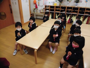 初めてお念珠を使ってお参りをした年少さん。上手におててが合わせられましたね。