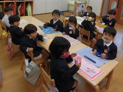 保育室では給食室で作ってくださった甘茶も皆でいただきました。