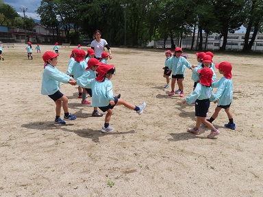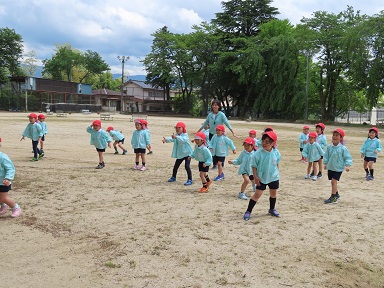 お弁当でおなかいっぱいになった後には、広いグラウンドで「だるまさん転んだ」「花いちもんめ」やかけっこ、草花探し等々をして遊んでくることもできました。疲れはどこへ~?!