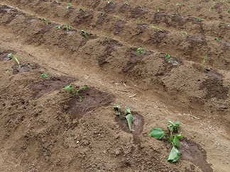 畑では、日頃畑の世話をしてくれている斉藤さんが、既に苗を植える場所が分かるよう穴をつくって待っていてくれました。