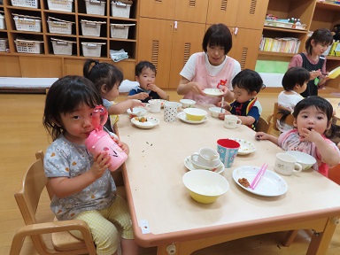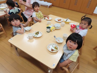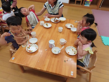 上手にあんよできるようになり、小走りもするお友達も出てきています。活動量も増え、スプーンやおててでおいしくご飯も食べられます!しっかり遊べてご飯の途中で眠たくなってしまうこともありますが・・・。