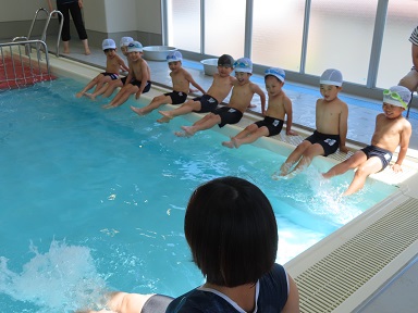 年中さんは今日からもう深い方に入っていました。水の中で様々な遊びを楽しみながら、水に親しんでいけるといいですね。