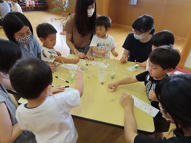 今年は、新型ウイルスの影響で、未就園児親子登園『さくらんぼ』が6月からの開始となりました。