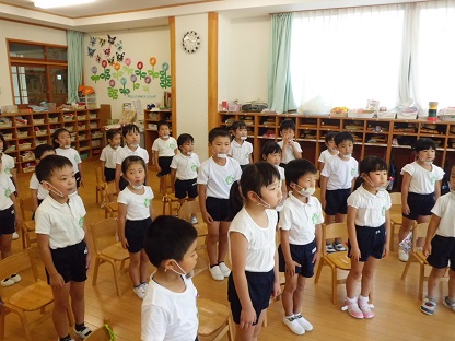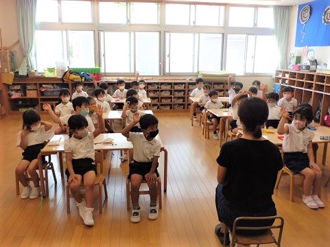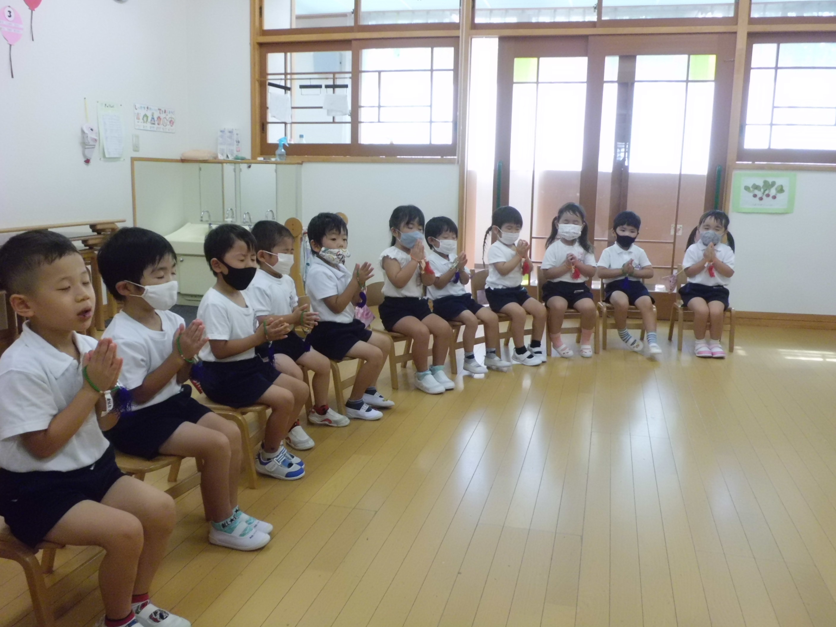 放送からでしたが園長先生のお話を、しっかりと反応しながら聞いている子どもたちでした。