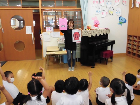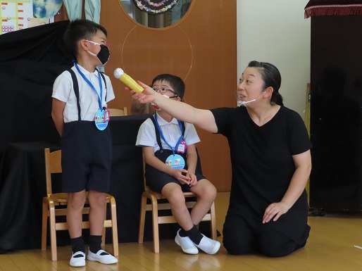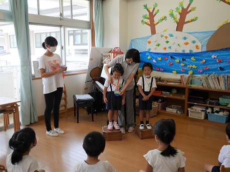 アトラクションもありました。担任の工夫を凝らしたアトラクションは、誕生会の楽しみの一つになっているようです。