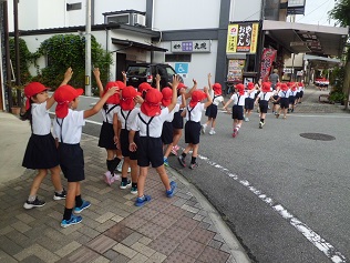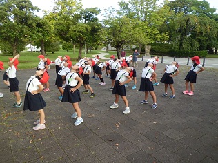 先にラジオ体操をしていたおばあさんたちも、もう一度一緒に体操をしてくれたようです。