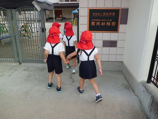朝の気持ちよい風に吹かれながらお散歩に出かけ、創造館で体操をしてきました。