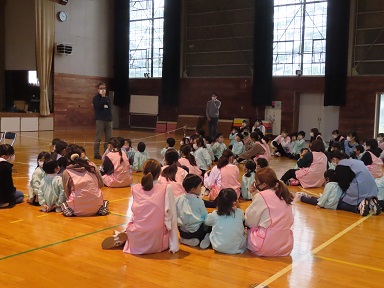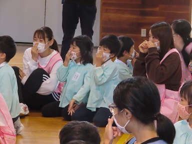 【年長】短大の先生たちに体育館で遊んでいただきました。