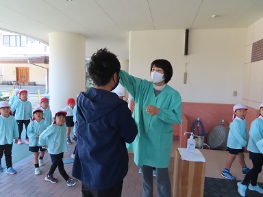 (園長先生が検温中です)