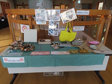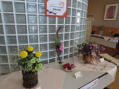 PTA作品展では、クラブ(フラワーアレンジメント・人形劇)と同好会(ハンドメイド)が作品展をしています。保護者の方の日本画の展示もありますよ!