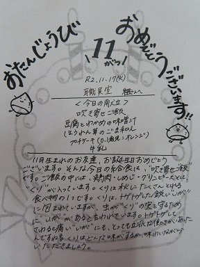お誕生会の給食は、秋らしいメニューでしたよ!