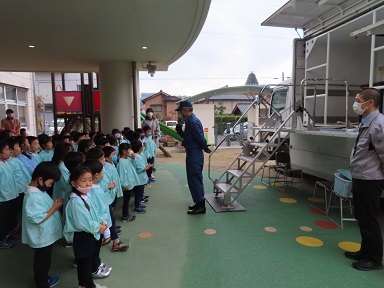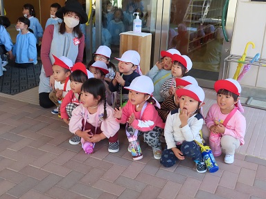未満児さんは体験はしませんでしたが、以上児さんたちが体験する様子を見ていました。自分の担任の先生が体験車に乗ると、ちょっと複雑な表情で応援していました。