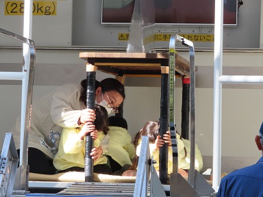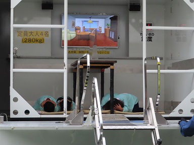 今日は地震体験車と市の職員の方が来てくださり、地震が起きた際にはどうやって身を守るかを教えてくださいました。