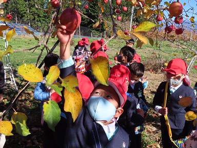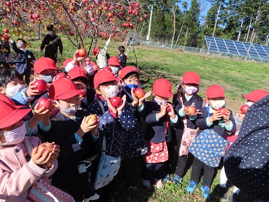 例年はりんご狩りの体験をした後、食べさせていただくのですが、コロナ禍のため、園に戻ってからいただきました。フジは蜜がたっぷり入って美味しかったようです。