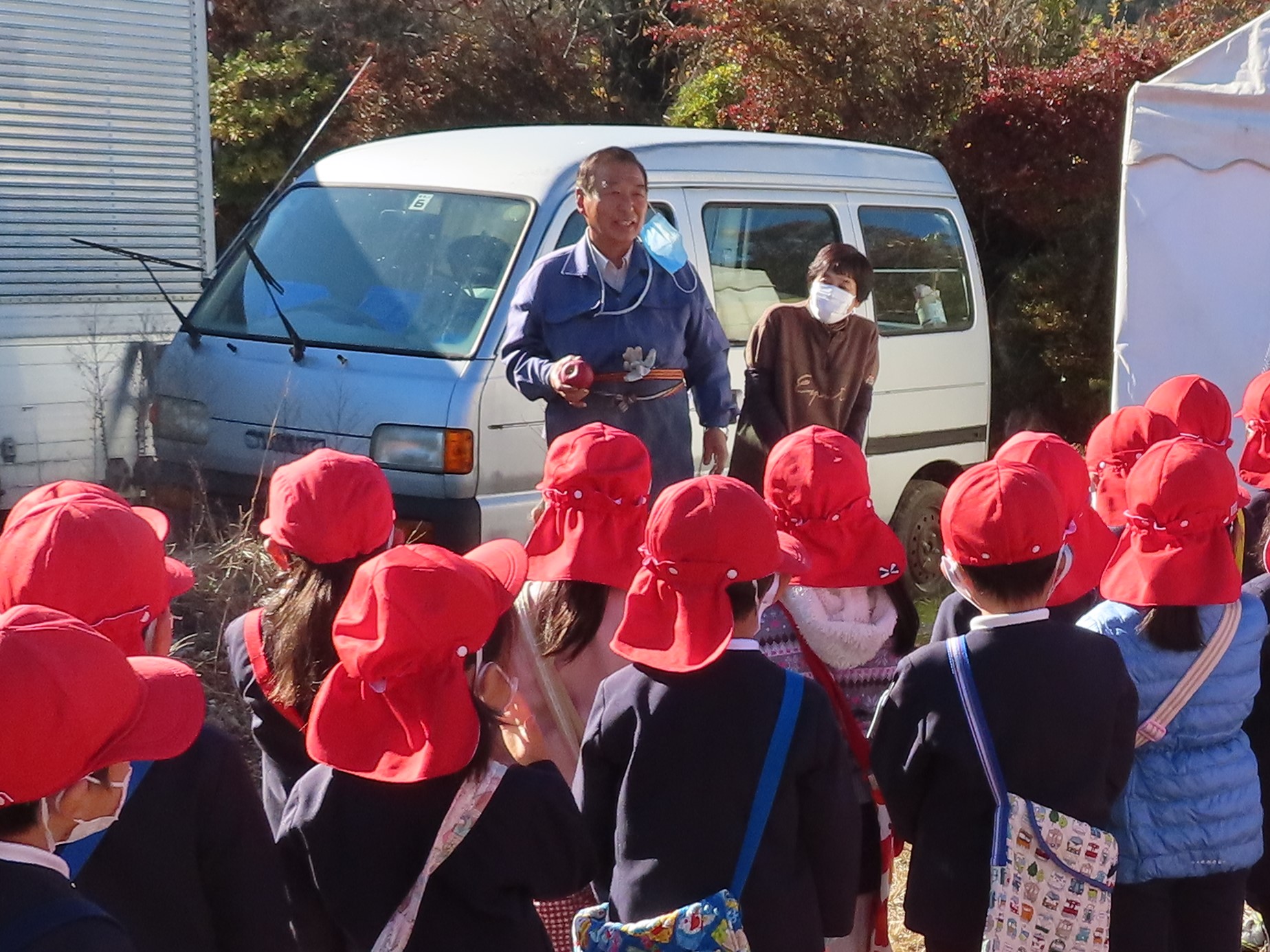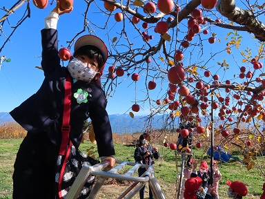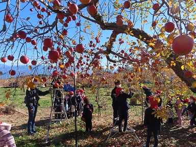 今年も松川町の今村農園さんにご招待いただき、年長さんがりんご狩りを体験してきました。