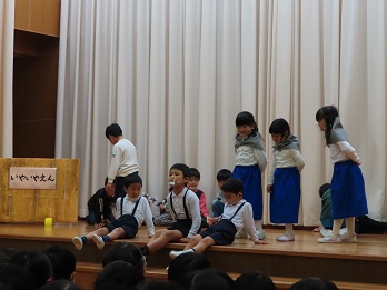 12月4日(金)には「劇とリズムの会」があります。当日に向け、今日は総練習を行いました。年長さんから年少さんまでの発表を、初めて園全体で見合いました。