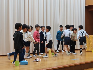 2クラス合わせて約30分の間、目はステージの年長さんに釘付け状態で、一生懸命見ていました。