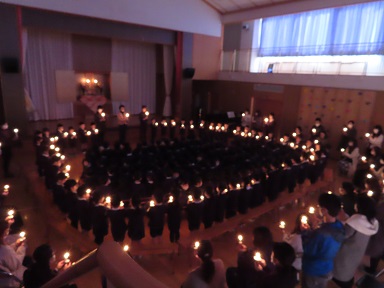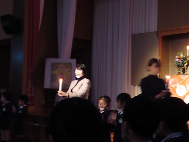 年長さんと職員の光の輪を、年長さんの保護者の方々の優しい光が囲みました。
