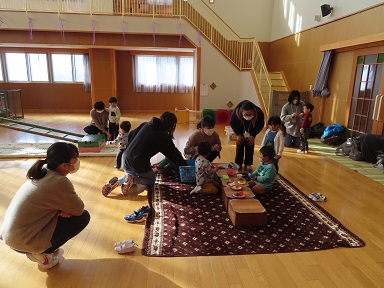 雪が降ったり発熱のお友だちもあり、参加者は火曜日が8組、水曜日は4組と少なめでした。